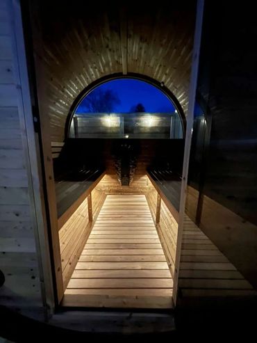 Relax in a 6-person barrel sauna crafted from European-imported wood and unwind in a Caldera Geneva saltwater hot tub beneath a year-round gazebo.